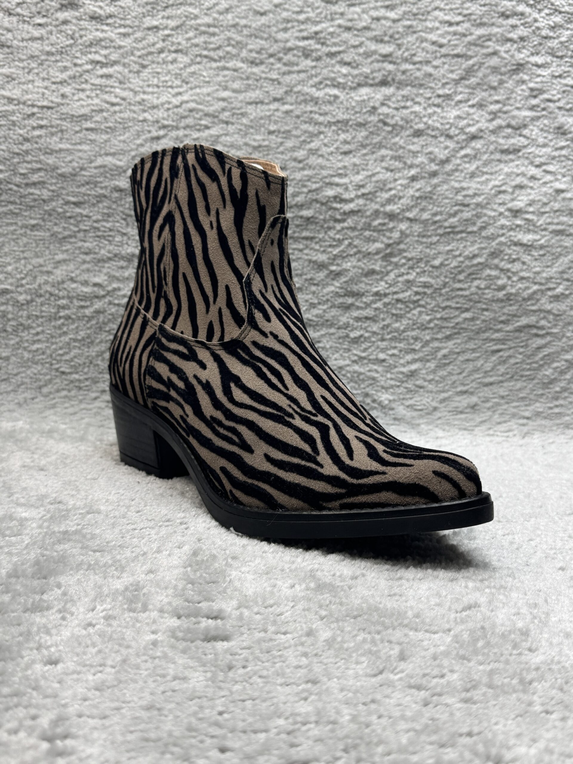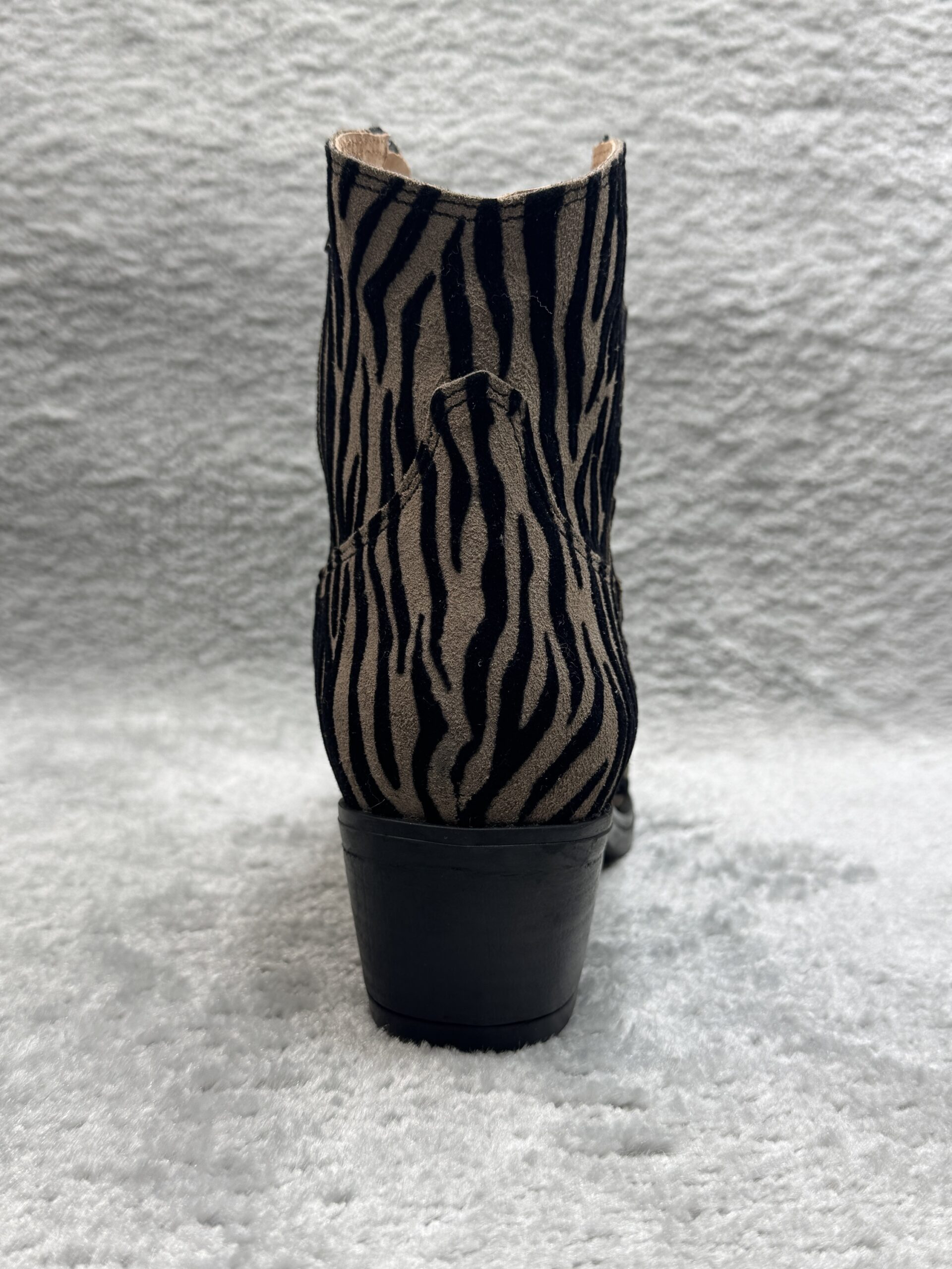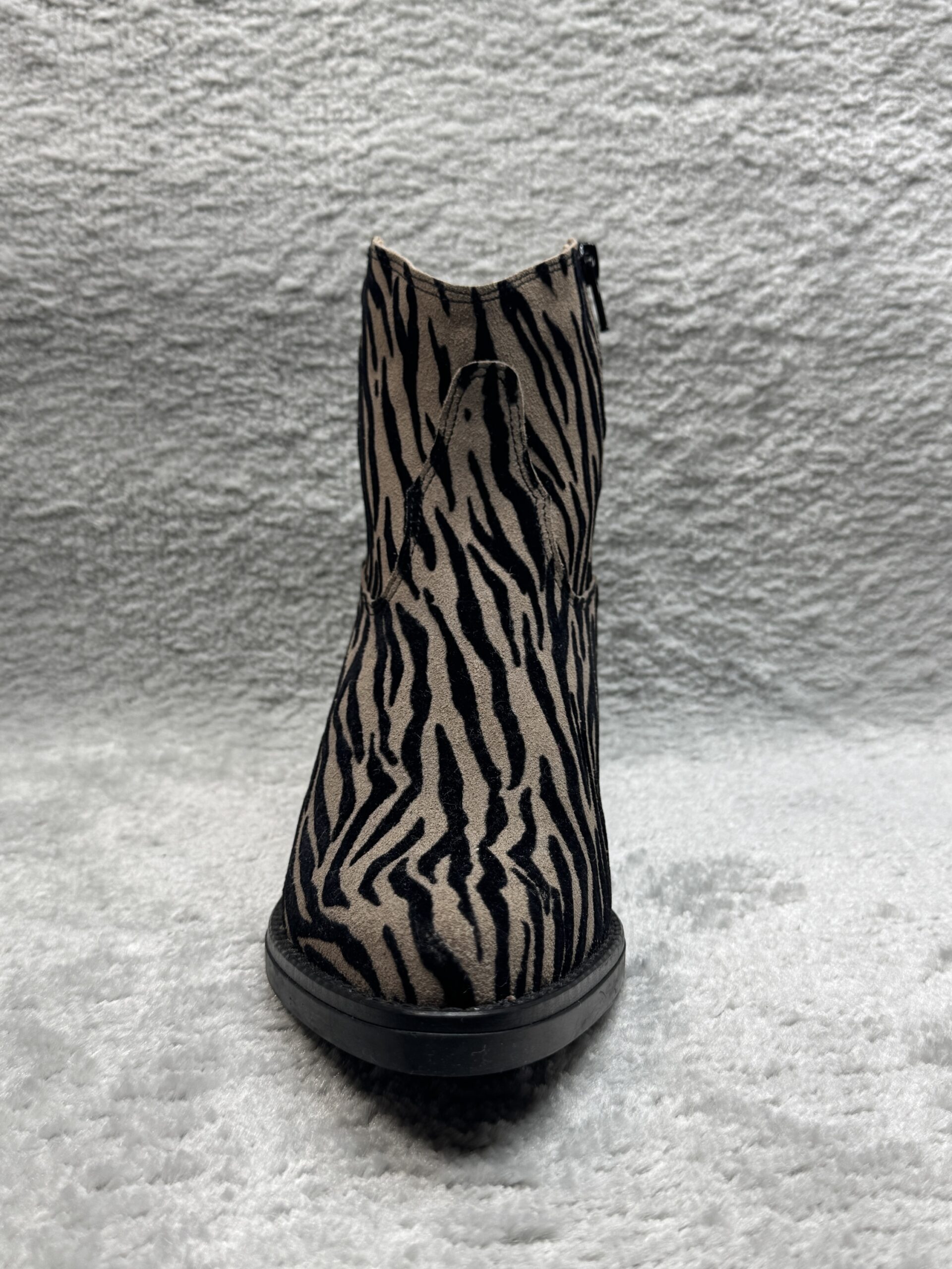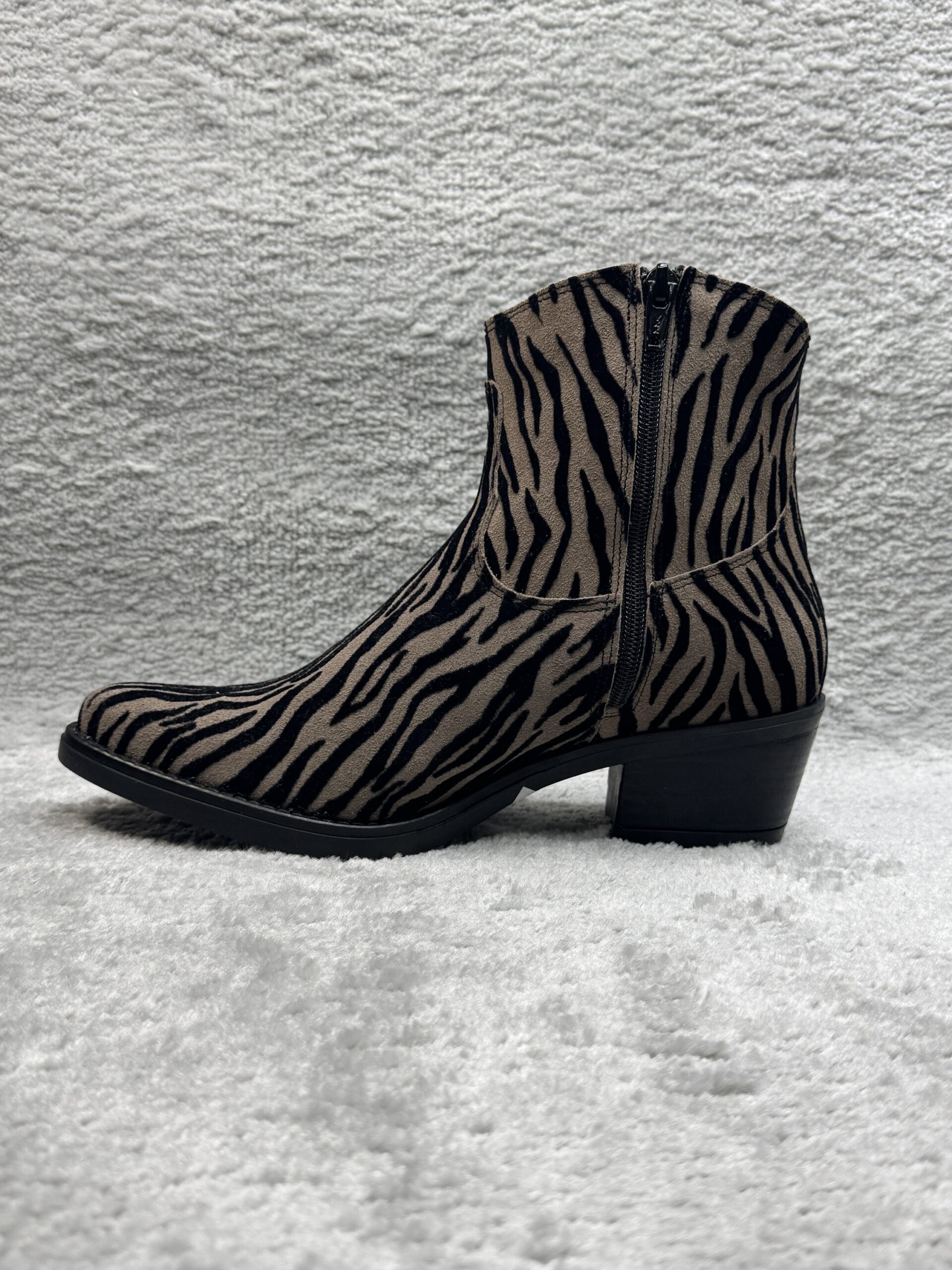 Cowboy Stiefeletten Damen – Western Boots mit Zebra Muster in Schwarz Taupe mit 5 cm Absatz