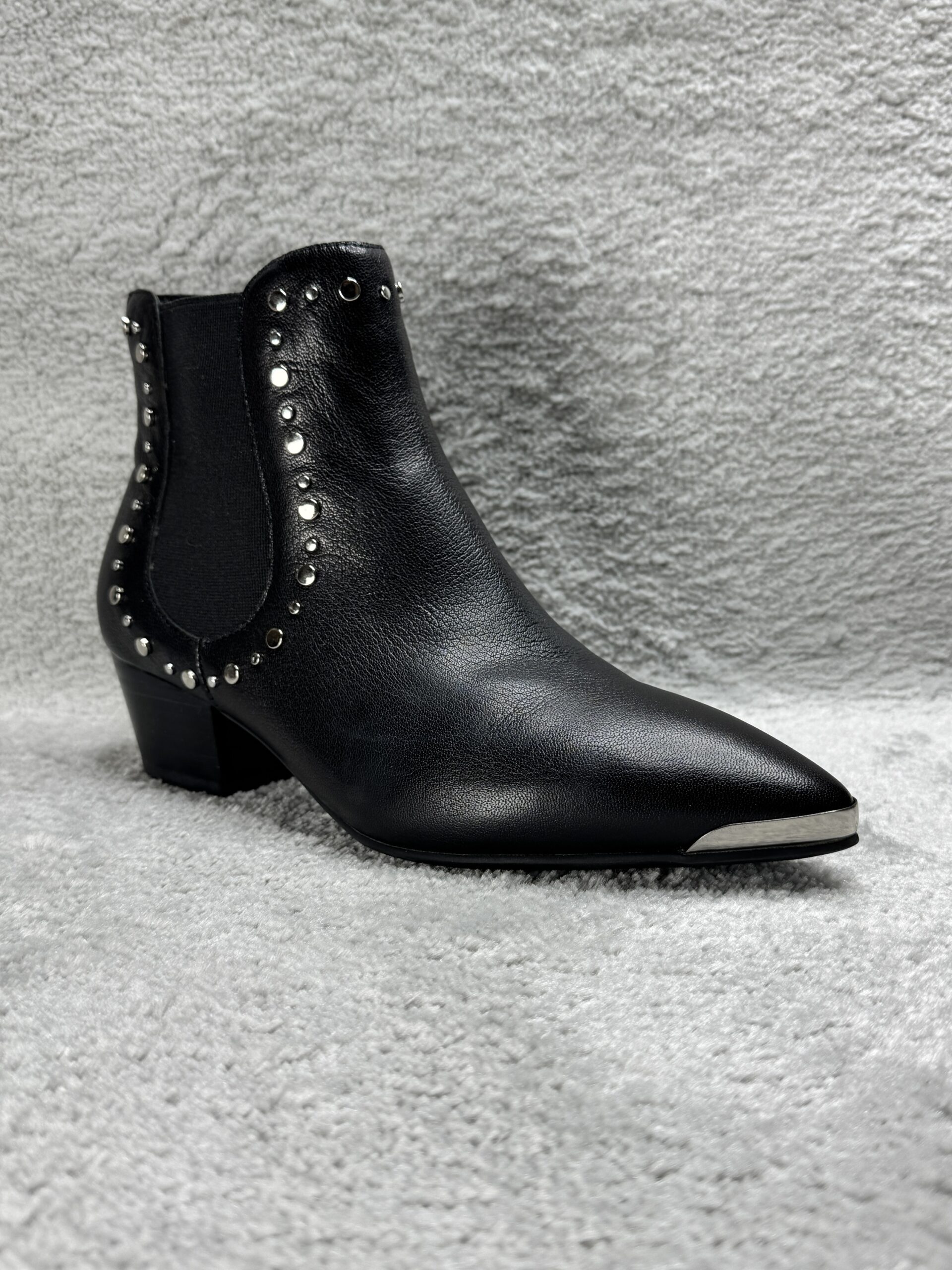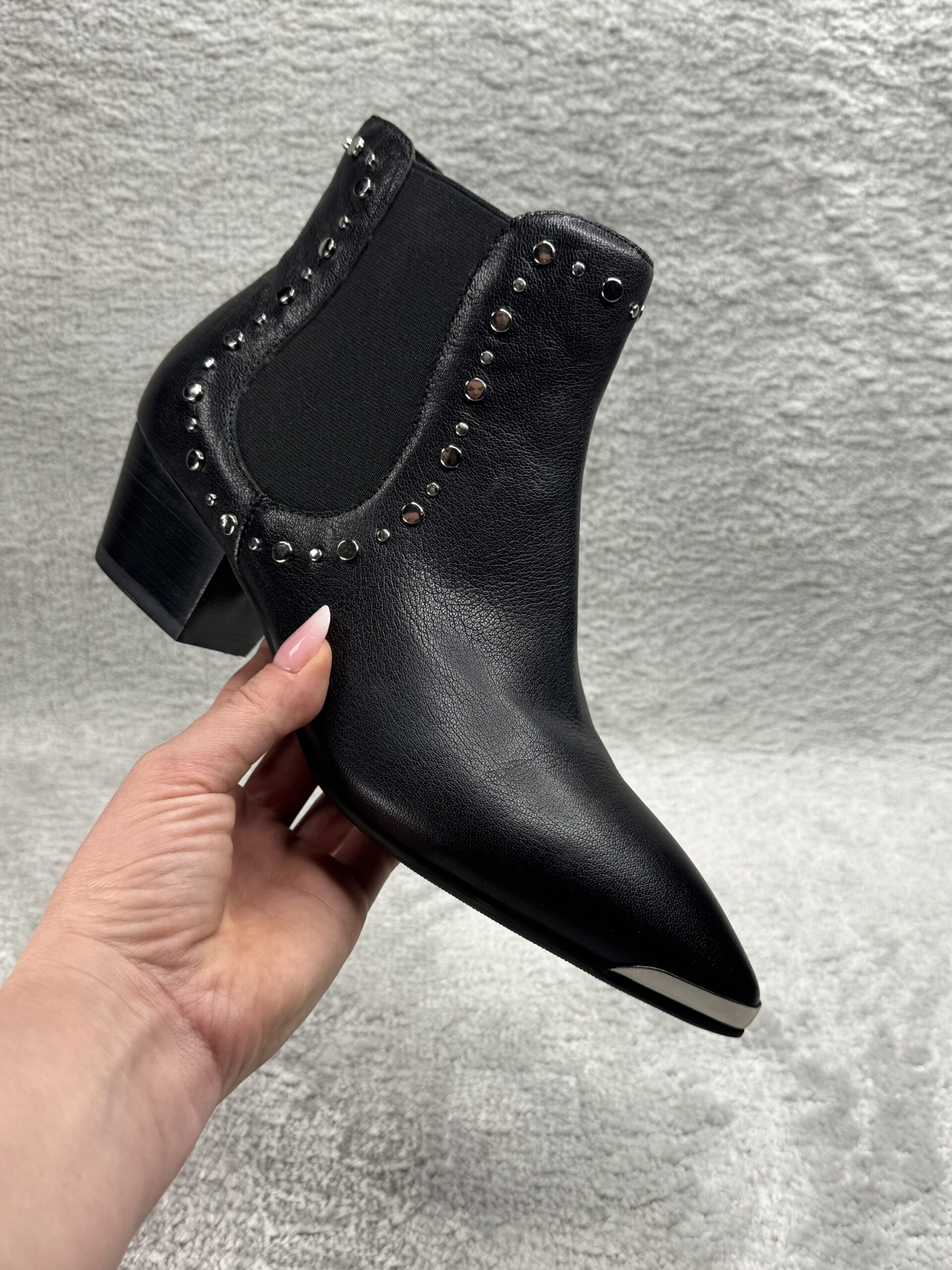 Diese eleganten Cowboy Stiefeletten aus echtem Leder vereinen klassisches Western-Design mit einem modernen Touch. Die silbernen Nieten entlang der elastischen Einsätze verleihen den Boots einen stilvollen Look, während die spitze Form und die metallverstärkte Zehenkappe den typischen Cowboy-Stil unterstreichen.