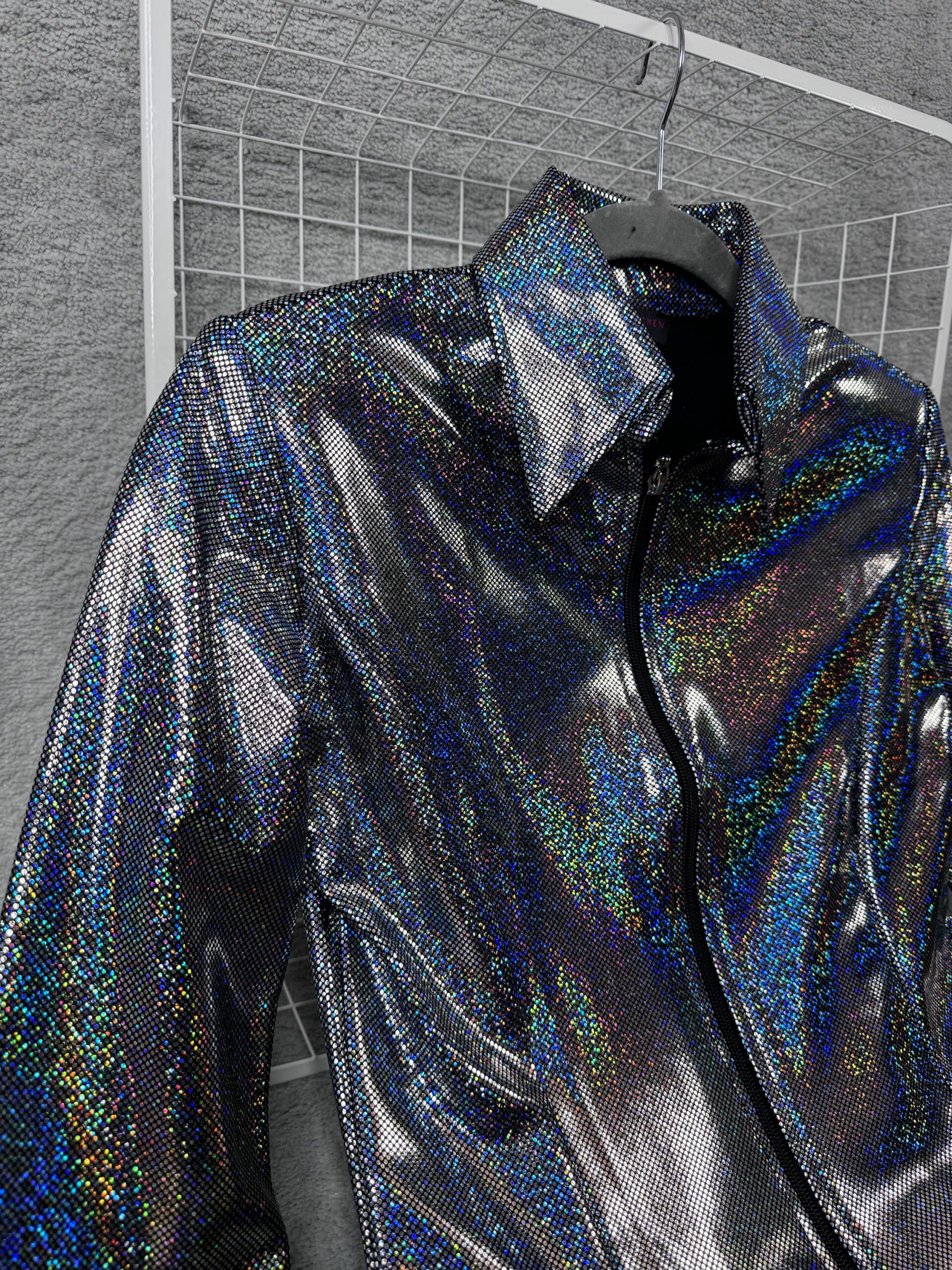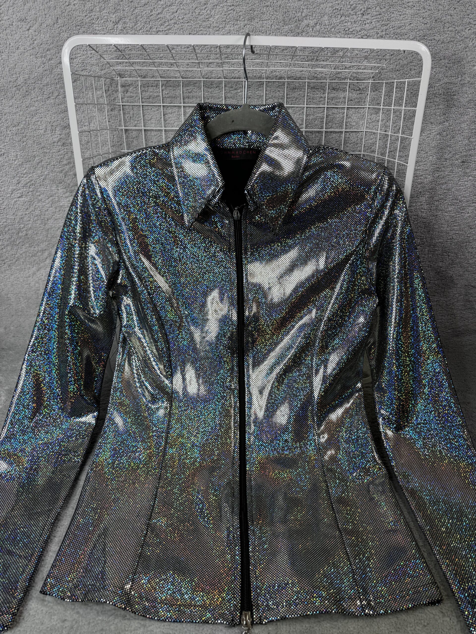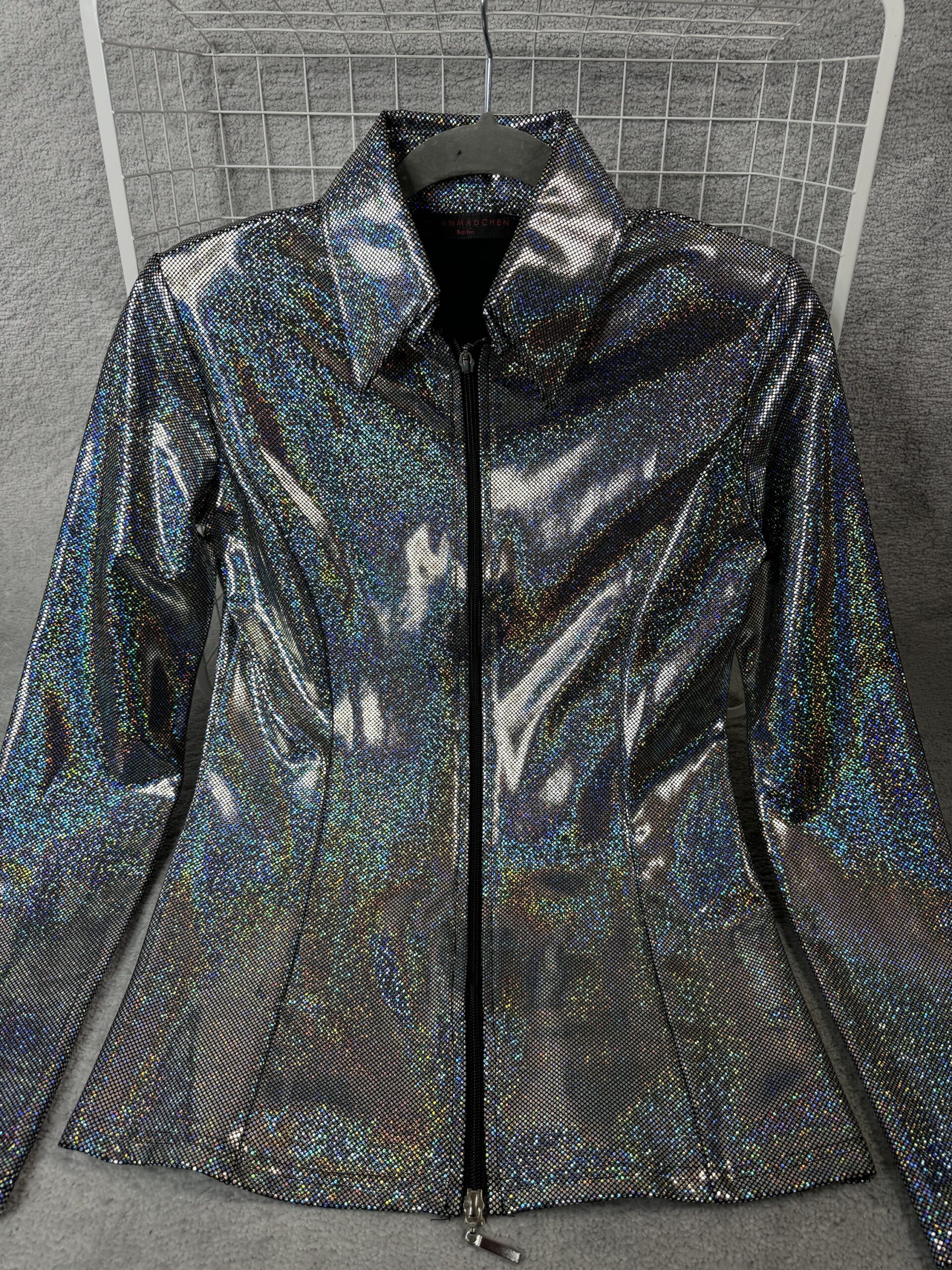 Hochwertige Glitzer-Showjacke mit verstärktem Kragen und Schulterpolstern, Glitzer und Glamour aus allen Blickwinkeln