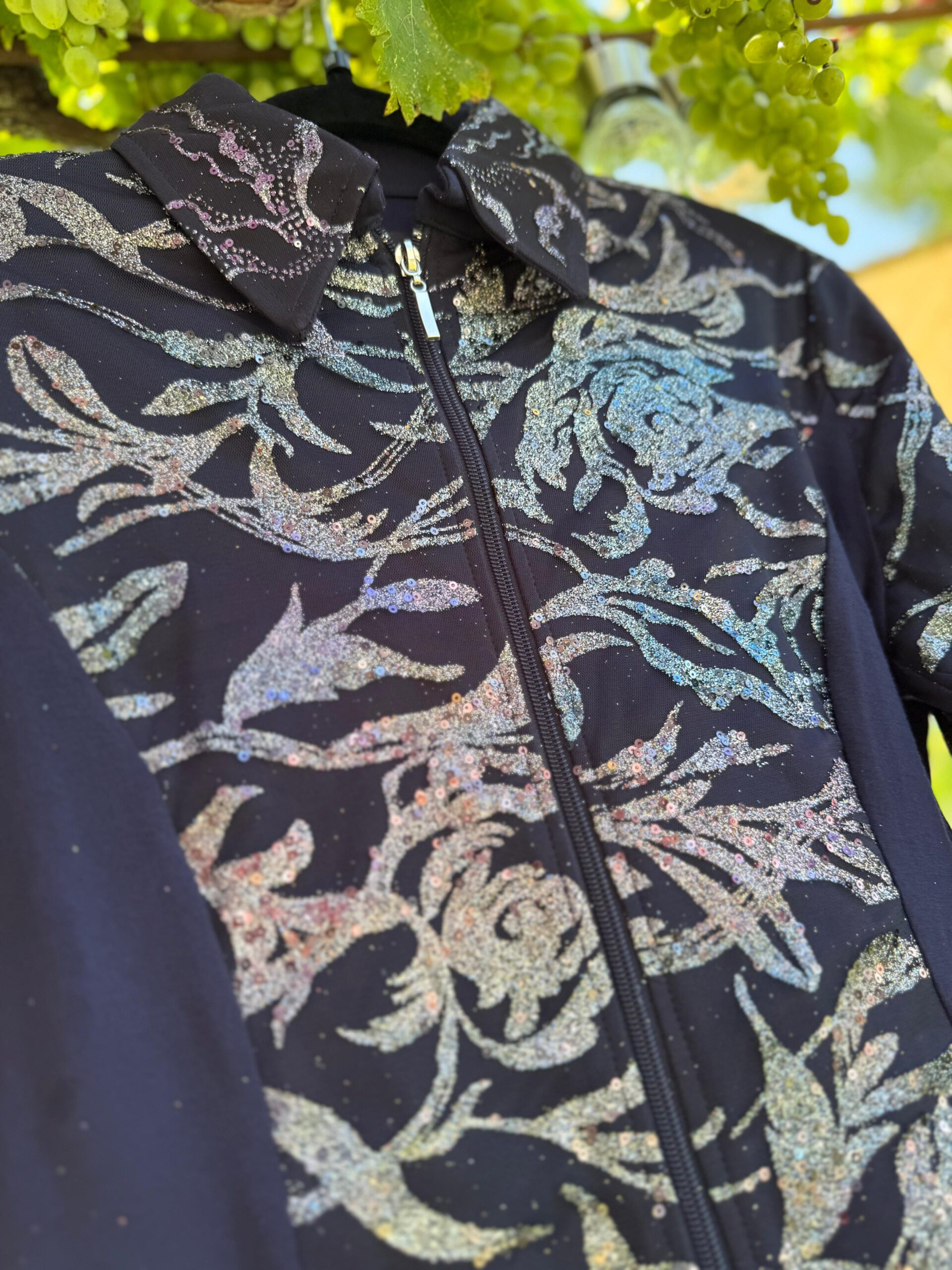Hochwertige Glitzer-Showjacke mit verstärktem Kragen und Schulterpolstern, Glitzer und Glamour aus allen Blickwinkeln
