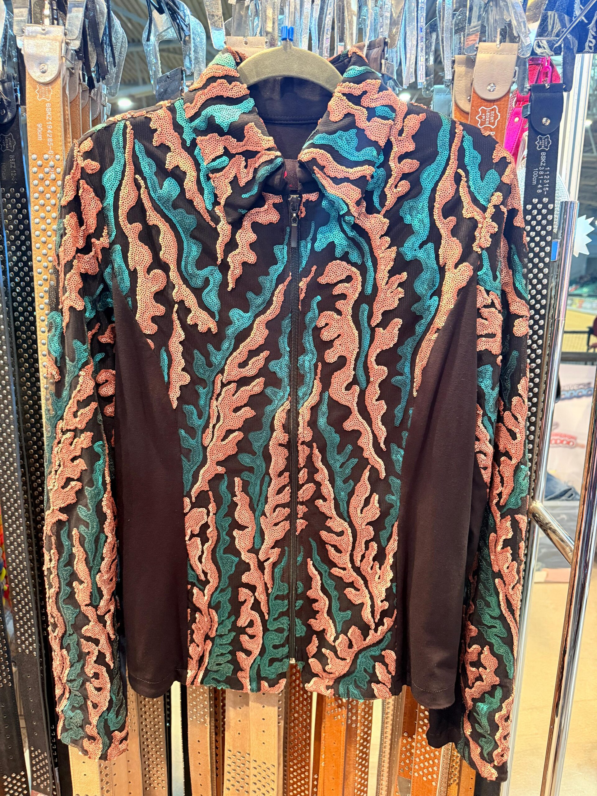 Hochwertige Glitzer-Showjacke mit verstärktem Kragen und Schulterpolstern, Glitzer und Glamour aus allen Blickwinkeln