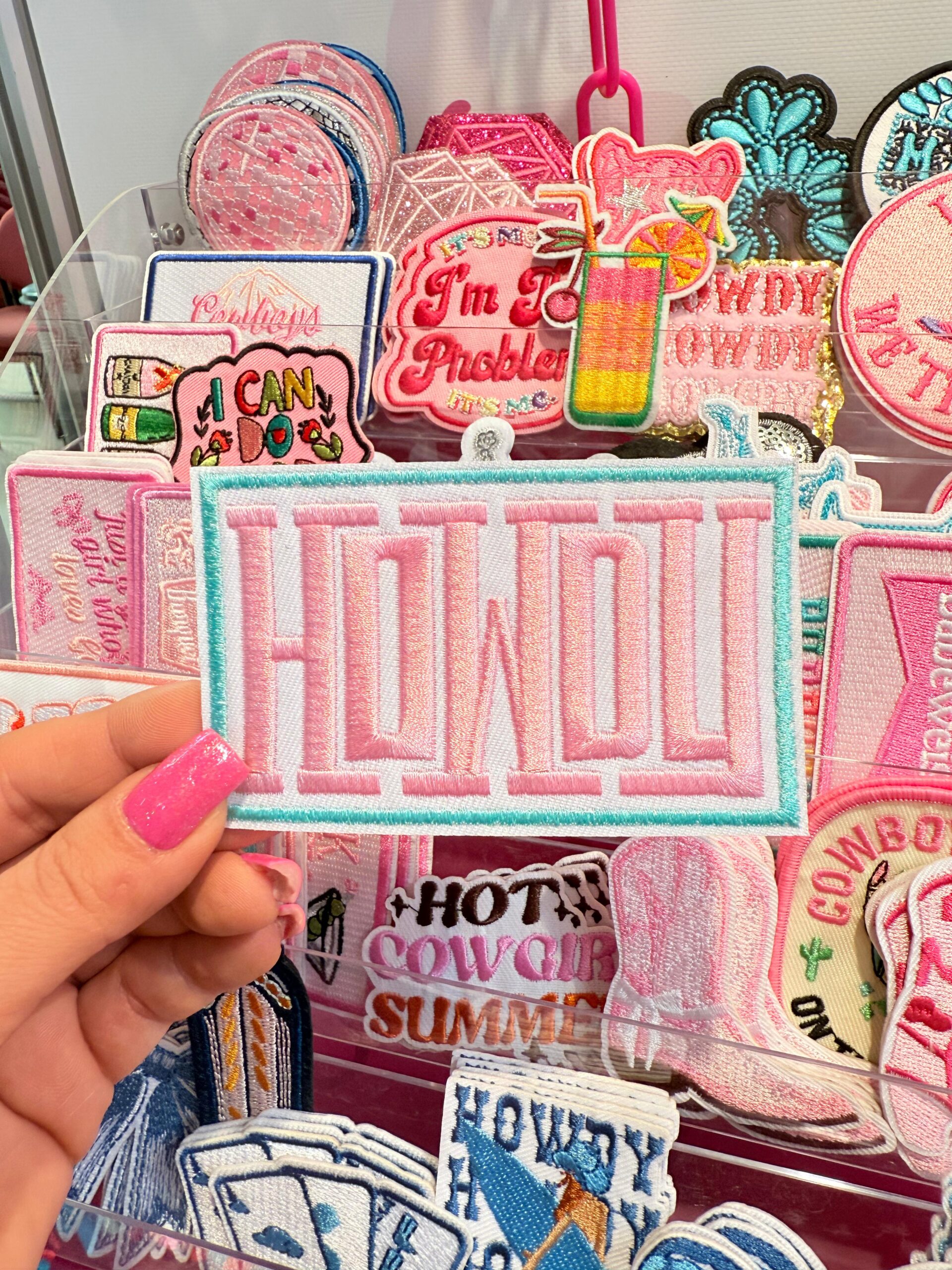 Patch Howdy Pink Embroidered Applique for Jackets, Hats & Bags