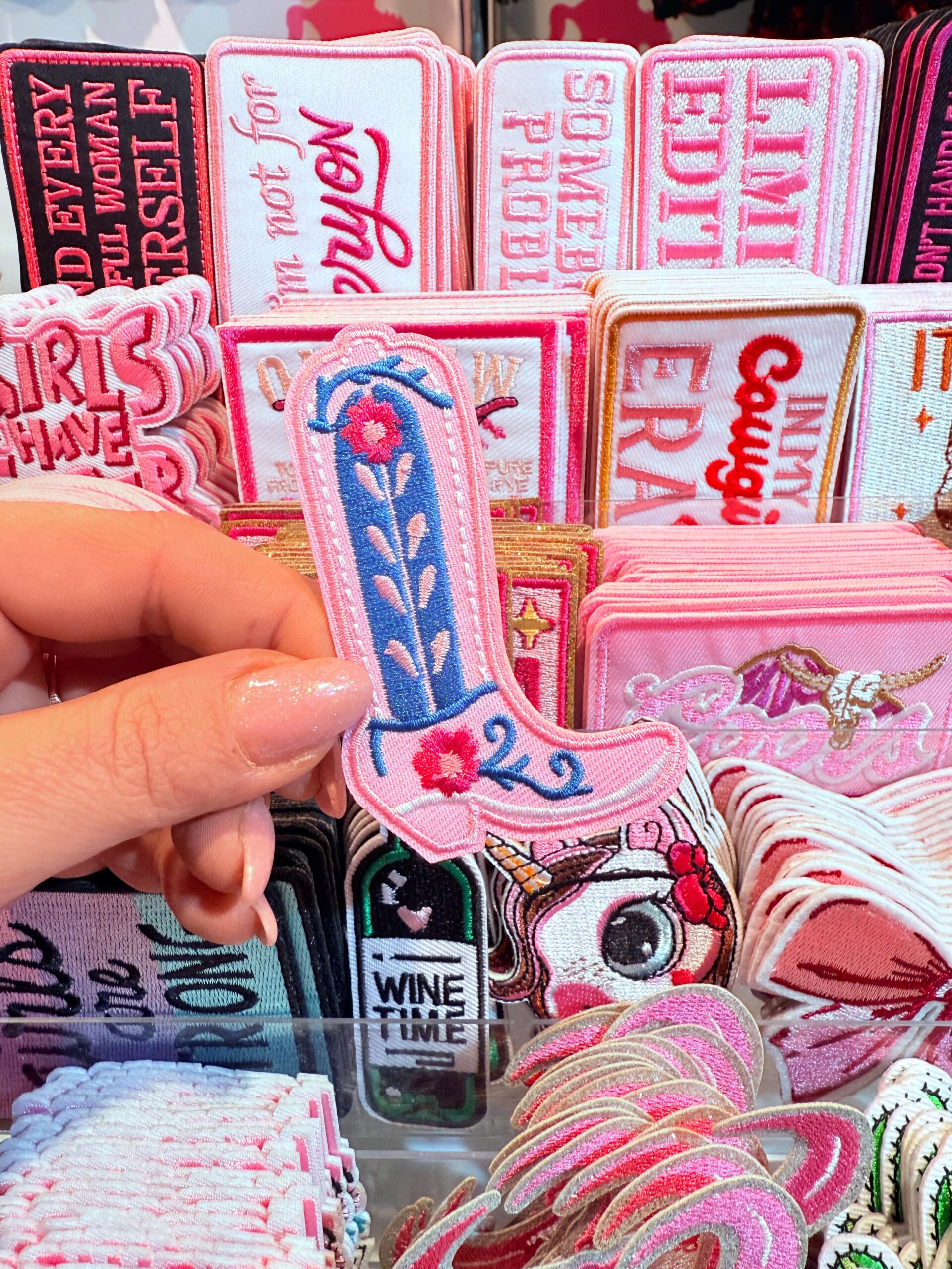 Patch Pink Blue Boot Embroidered Applique for Jackets, Hats & Bags