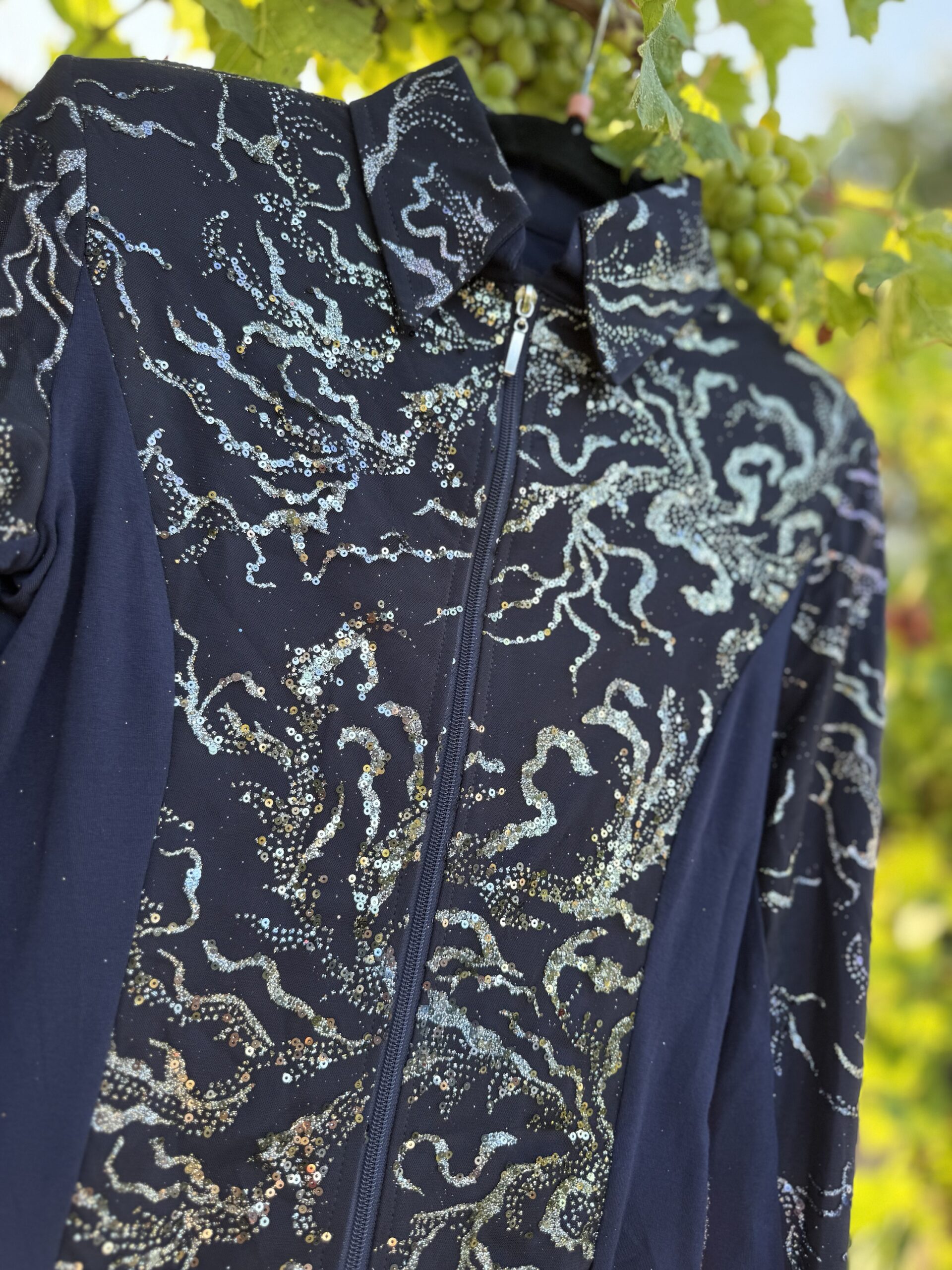 Hochwertige Glitzer-Showjacke mit verstärktem Kragen und Schulterpolstern, Glitzer und Glamour aus allen Blickwinkeln