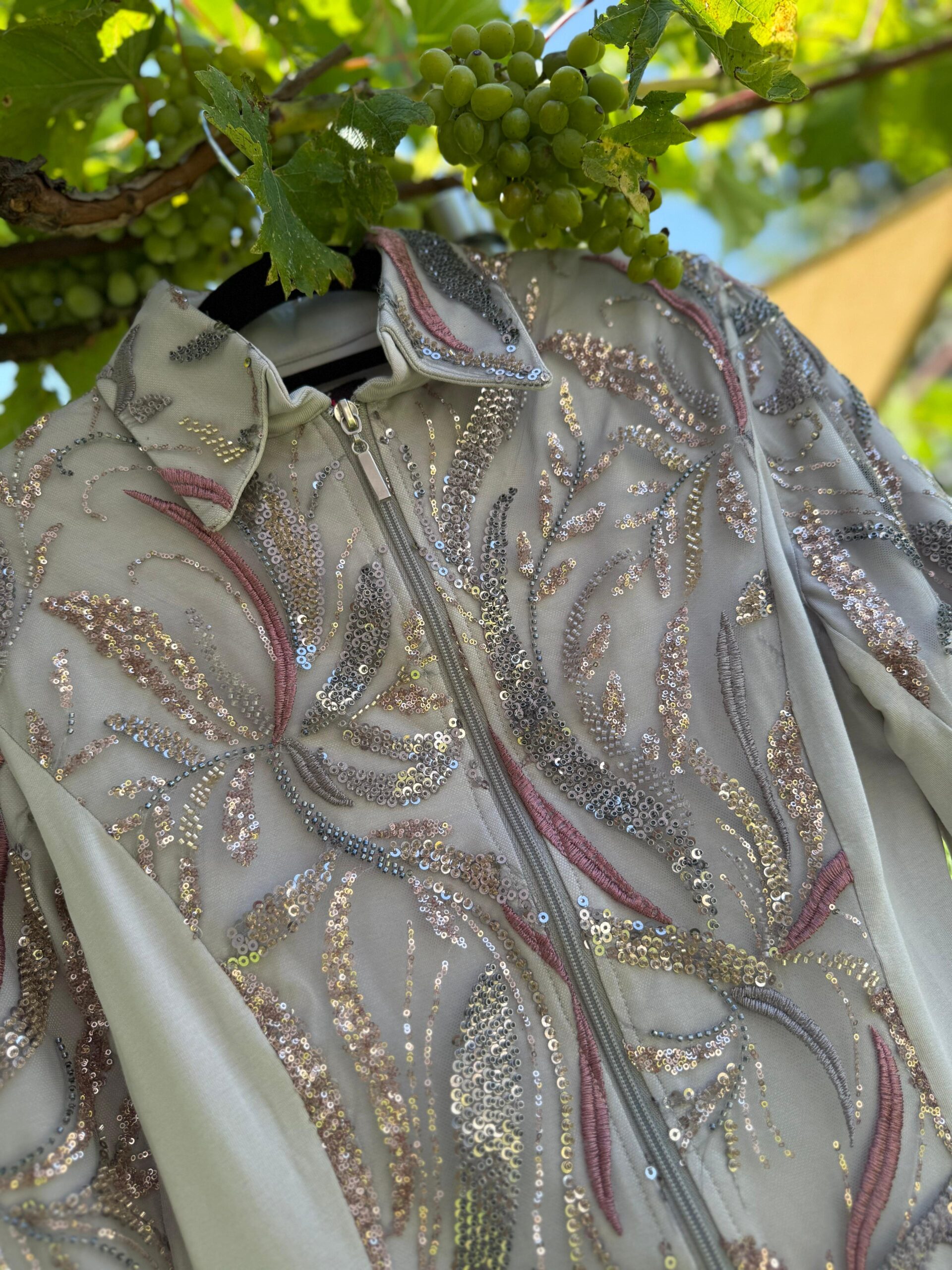 Hochwertige Glitzer-Showjacke mit verstärktem Kragen und Schulterpolstern, Glitzer und Glamour aus allen Blickwinkeln
