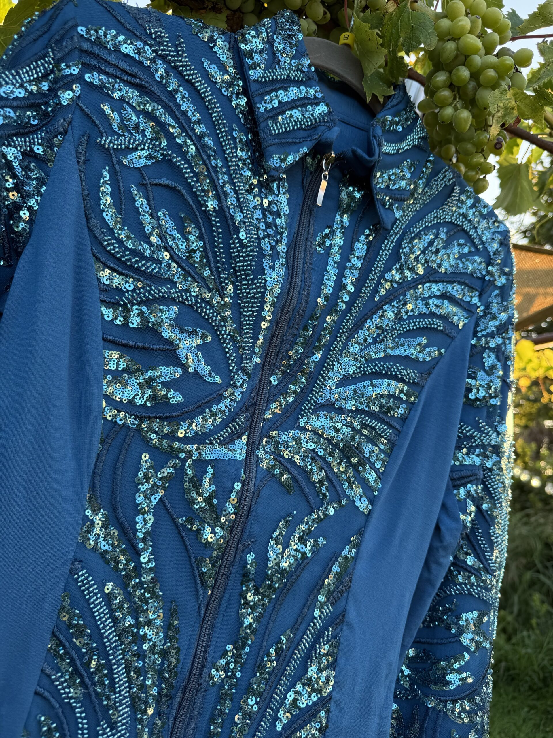 Western Show Outfit: Sequines Jacket – Blue Glitter Lines – Made in Germany