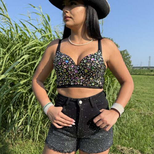 Wunderschöne Shorts, die dich in jedem Moment strahlen lässt. Auf allen Seiten besetzt mit Strasssteinen.