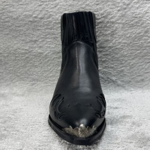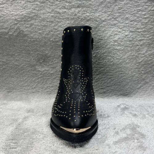 Cowboy Stiefeletten Damen Schwarze Leder Boots mit Nieten und 5 cm Blockabsatz Diese Cowboy Stiefeletten für Damen vereinen zeitlose Eleganz mit rockigem Western Flair Das hochwertige schwarze Leder sorgt für eine edle Optik während die goldenen Nieten und die dekorativen Ziernähte den Boots eine markante Note verleihen Der 5 cm hohe Blockabsatz bietet nicht nur…