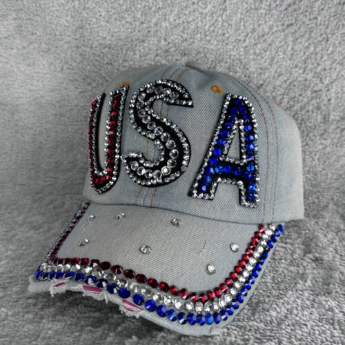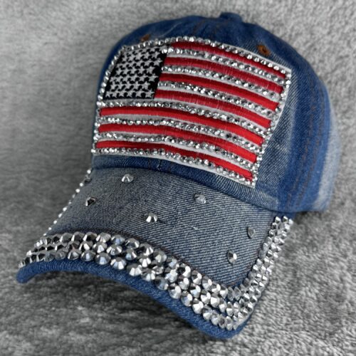 Wunderschöne Jeans-Cap mit aufwendig bestickter USA-Flagge und funkelnden Strasssteinen – ein echter Blickfang für Western-Fans, Country-Girls und Festivalbesucherinnen. Die Cap ist stufenlos verstellbar und passt dank Einheitsgröße bequem auf fast jeden Kopf. Das Material aus 35 % Baumwolle und 65 % Polyester sorgt für ein angenehmes Tragegefühl – ideal für jede Jahreszeit. Ein Must-have für alle, die…